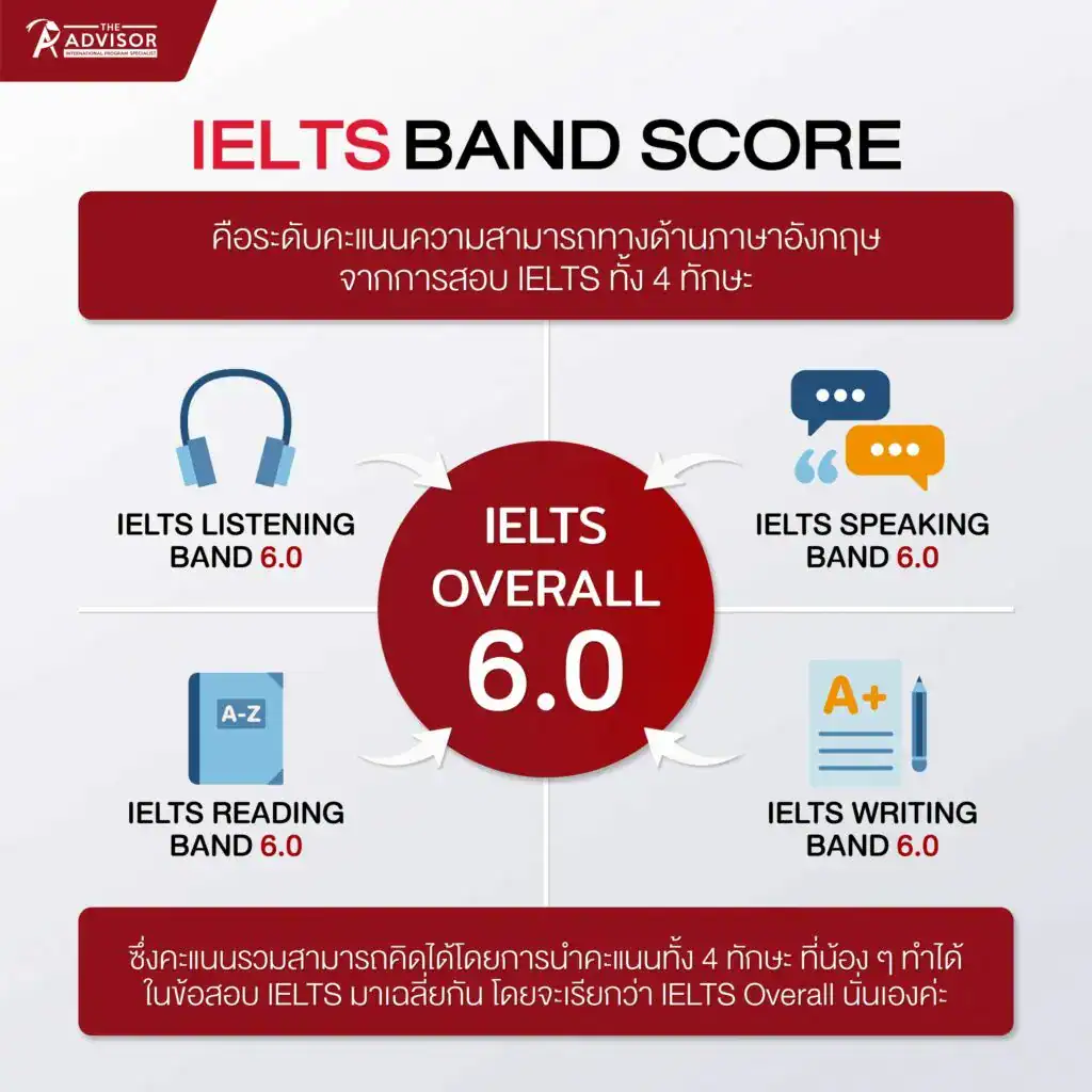 IELTS Band Scores คือระดับคะแนนความสามารถทางด้านภาษาอังกฤษจากการสอบ IELTS ทั้ง 4 ทักษะดังนี้